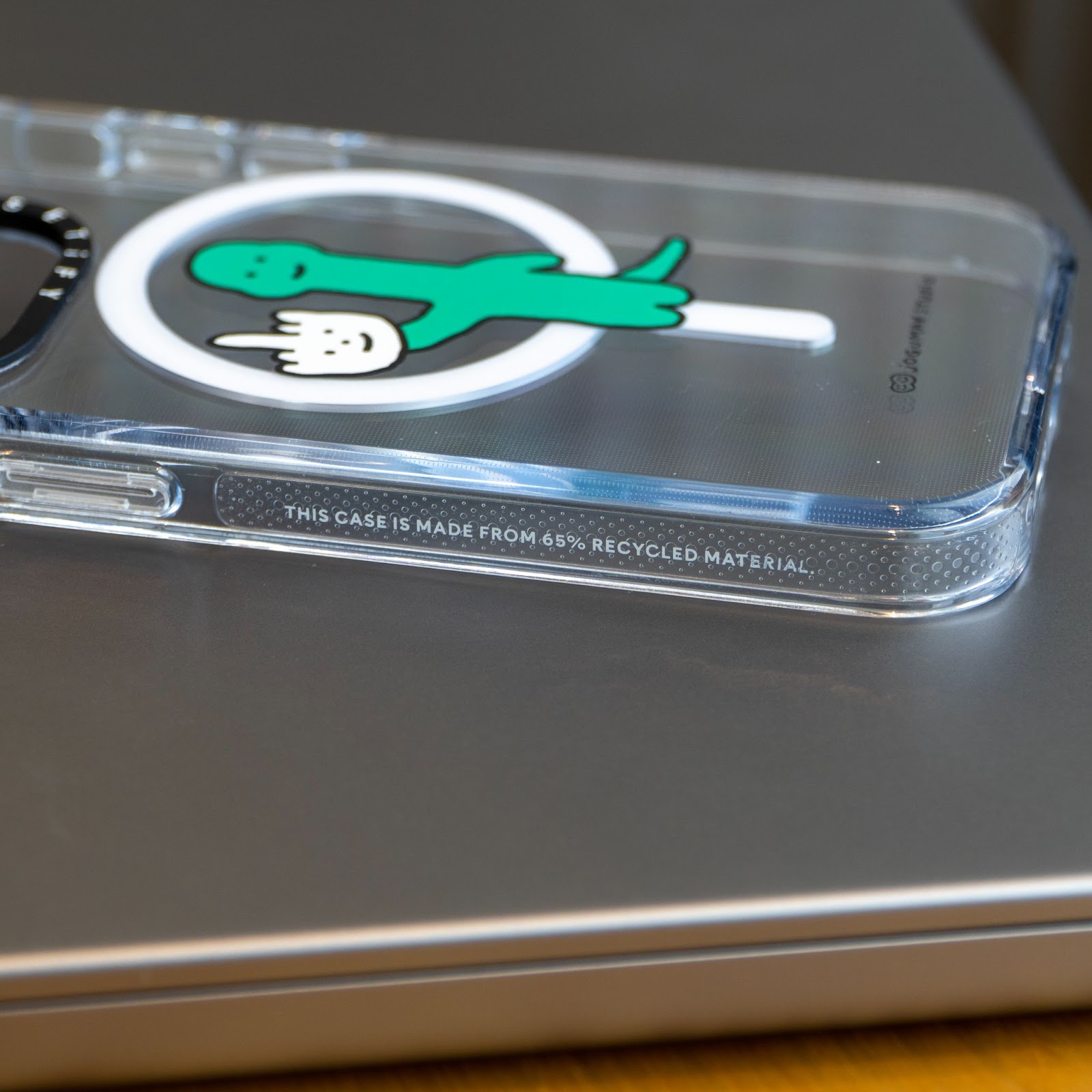 케이스에서 결정의 요인이 되는 가장 중요한 부분은 디자인이죠. 기본적인 케이스의 디자인은 흔한 CASETiFY의 클리어 케이스와 동일합니다. 가장 큰 차이점은 후면 중앙에 jOGUMAN STUDiO의 하찮은 공룡들 캐릭터 중 하나가 엿(Hand)을 날리고 있는게 있다는 것입니다. Talk to the Hand라는 이름이 케이스에 붙은 이유이기도 한데, 이 외에 여러가지 디자인을 고를 수 있습니다. 여러가지 디자인은 CASETiFY 홈페이지를 참고하시면 될 것 같습니다.